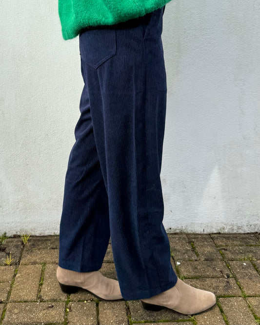 Calças de Bombazina em Azul Marinho