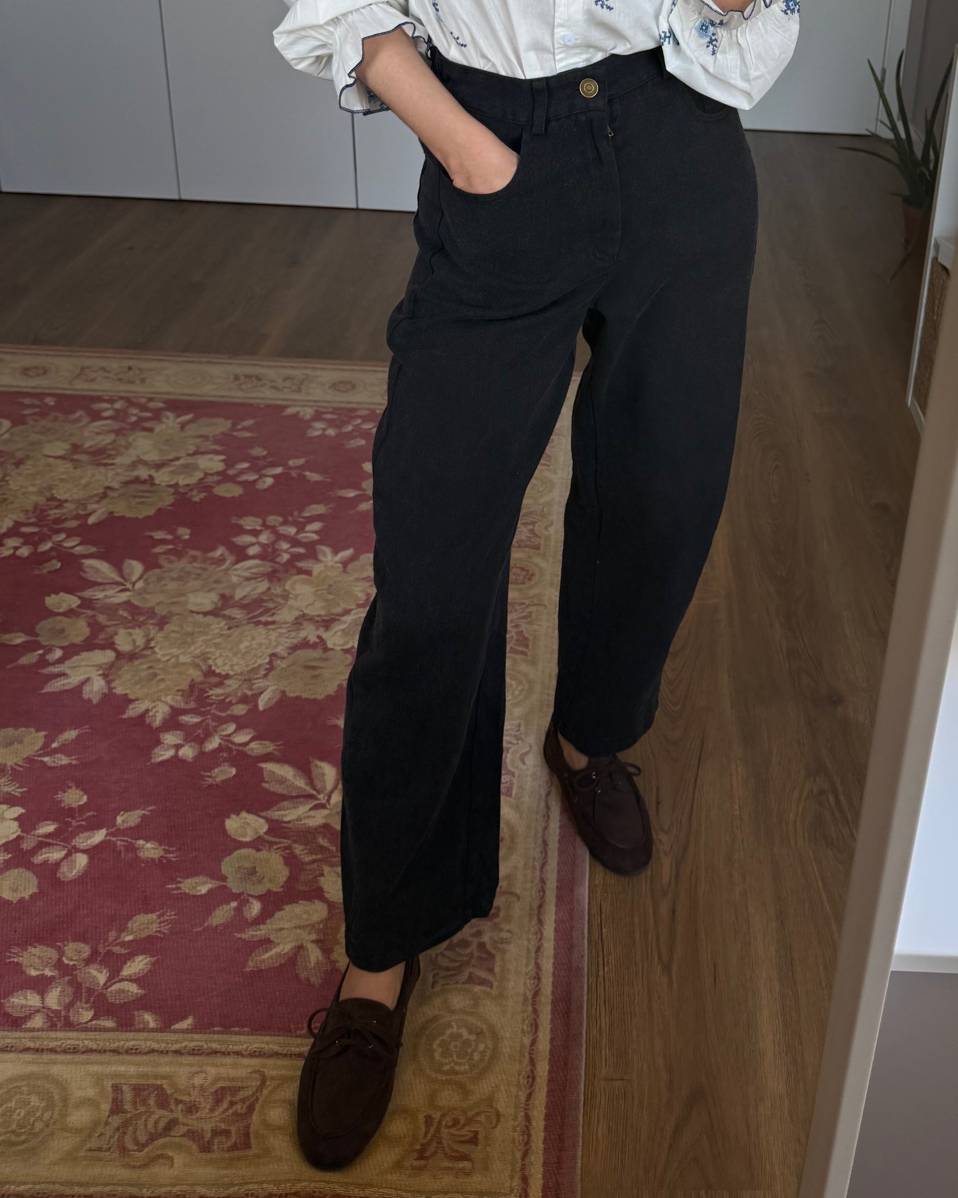 Depois do enorme sucesso que foram as nossas calças de bombazina - que repusemos durante 3 meses consecutivos, após esgotarem por diversas vezes, decidimos trazer o mesmo modelo, mas desta vez num tecido mais adequado à estação, mas que na verdade pode ser usado o ano inteiro.