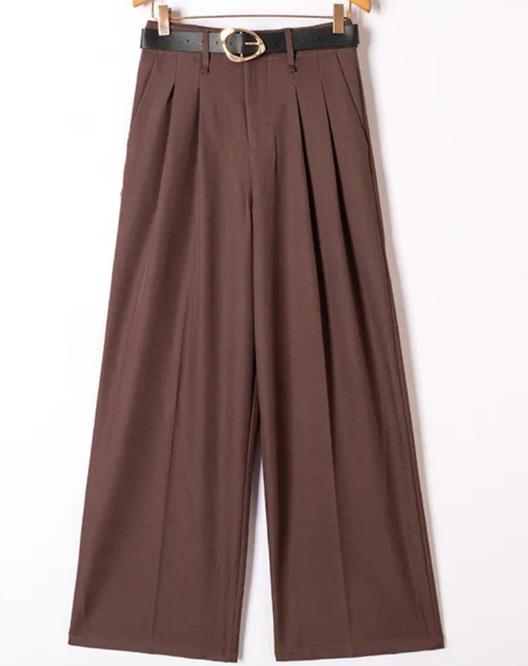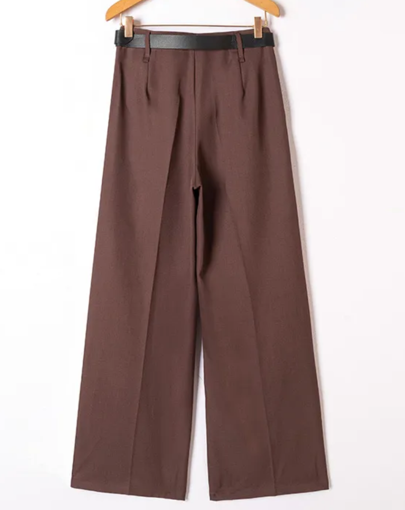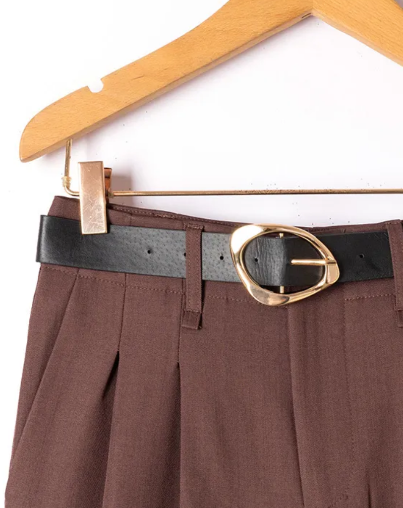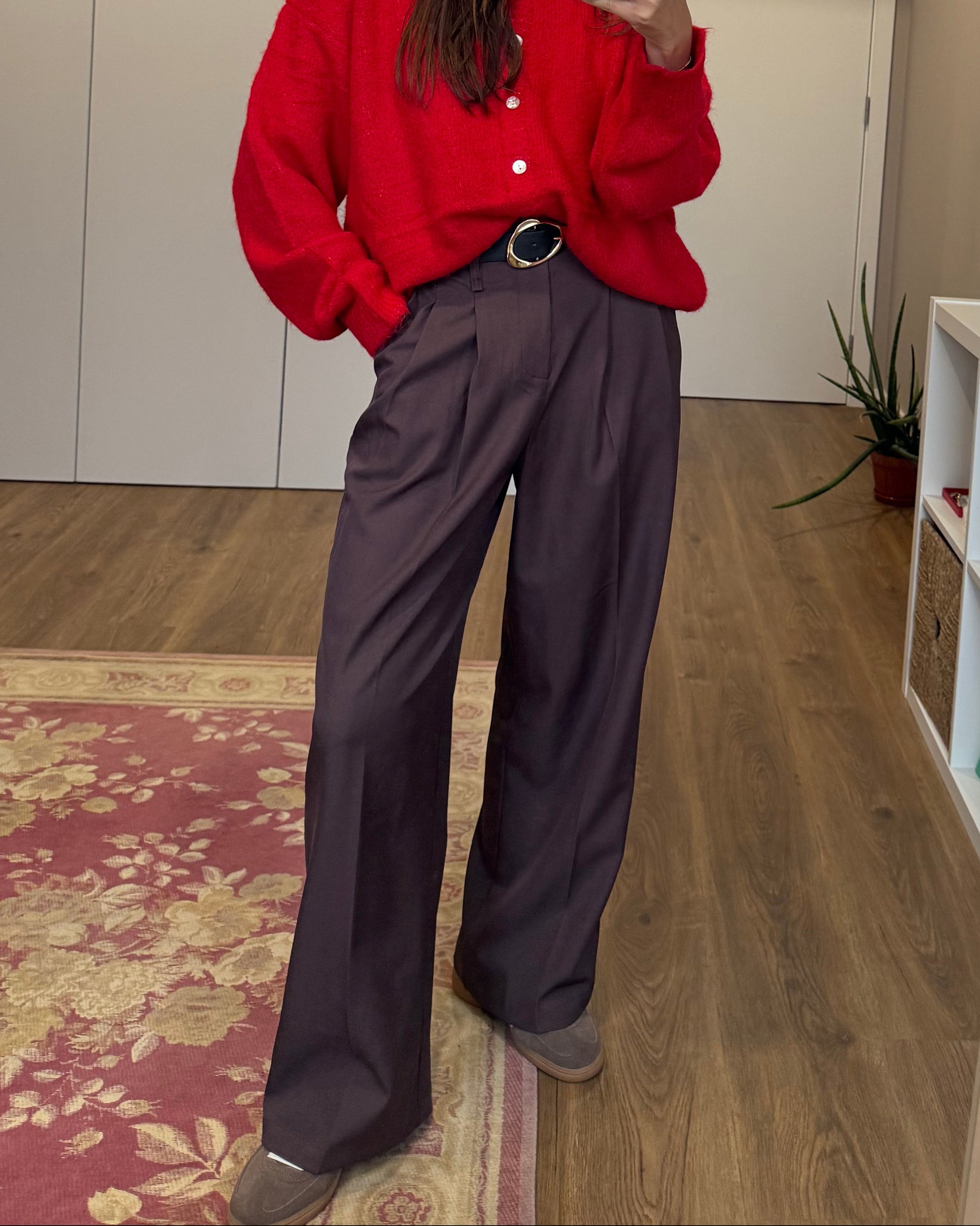 Calças de Alfaiataria com corte elegante. Cintura subida. Perna larga. Cinto incluido.