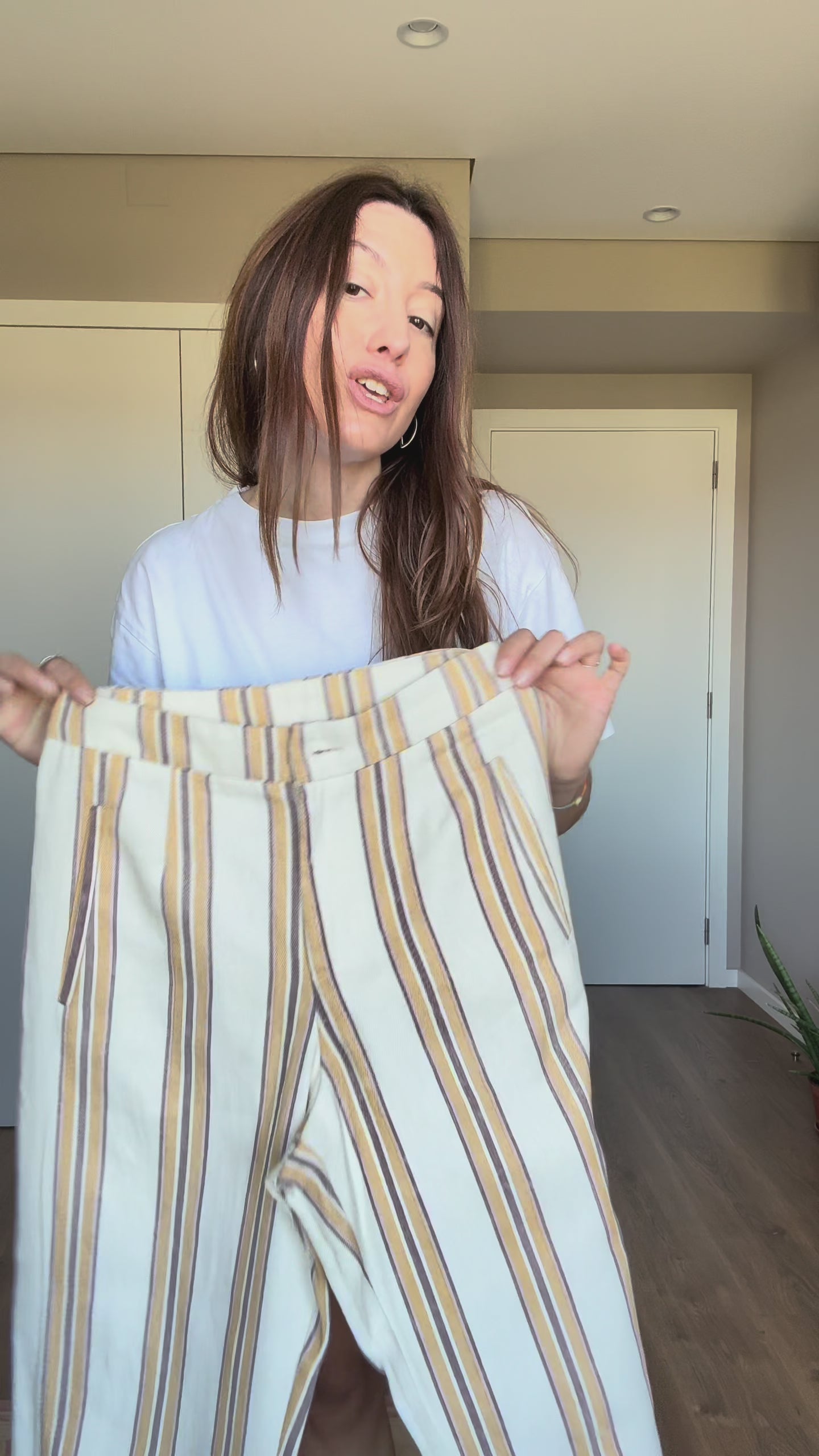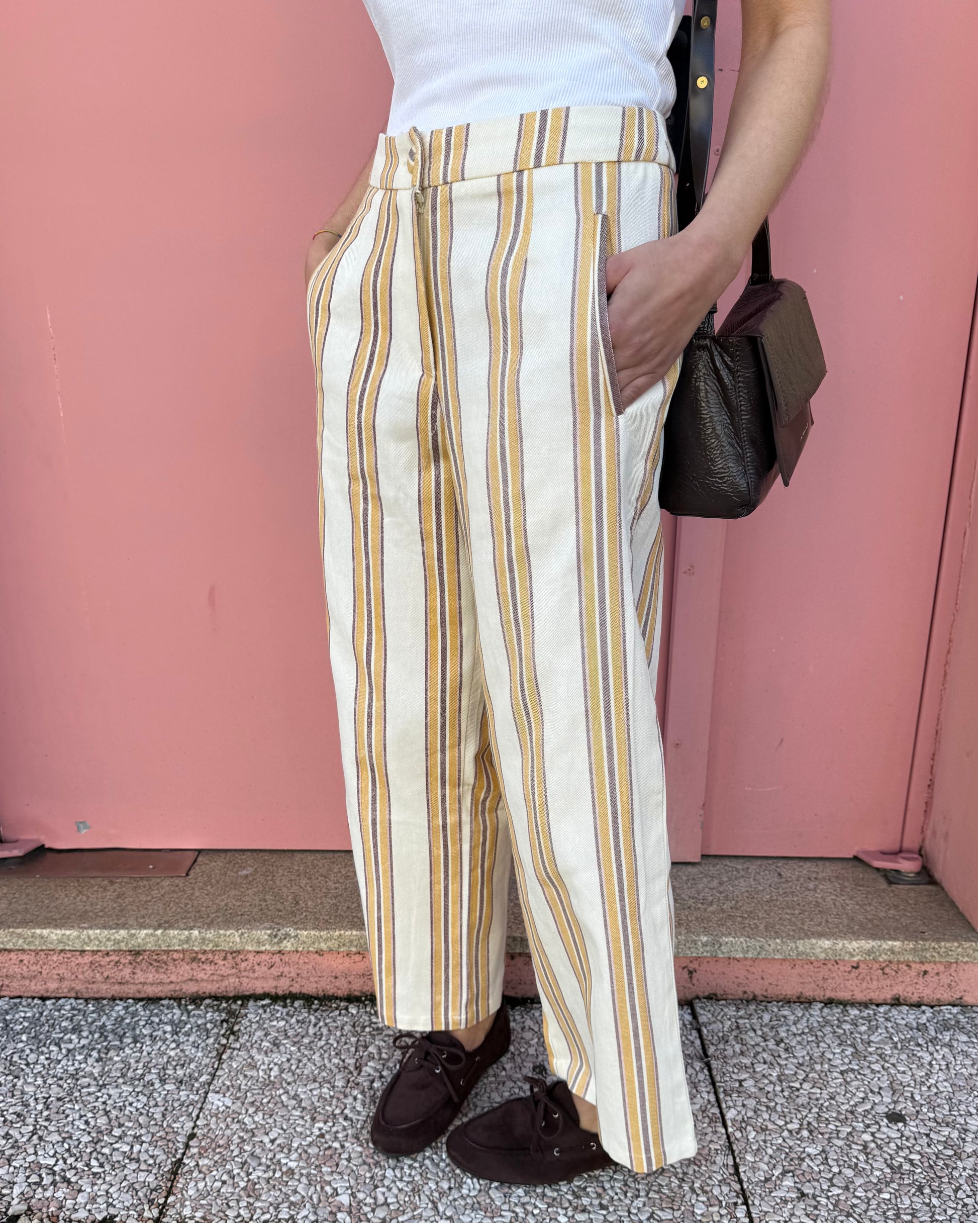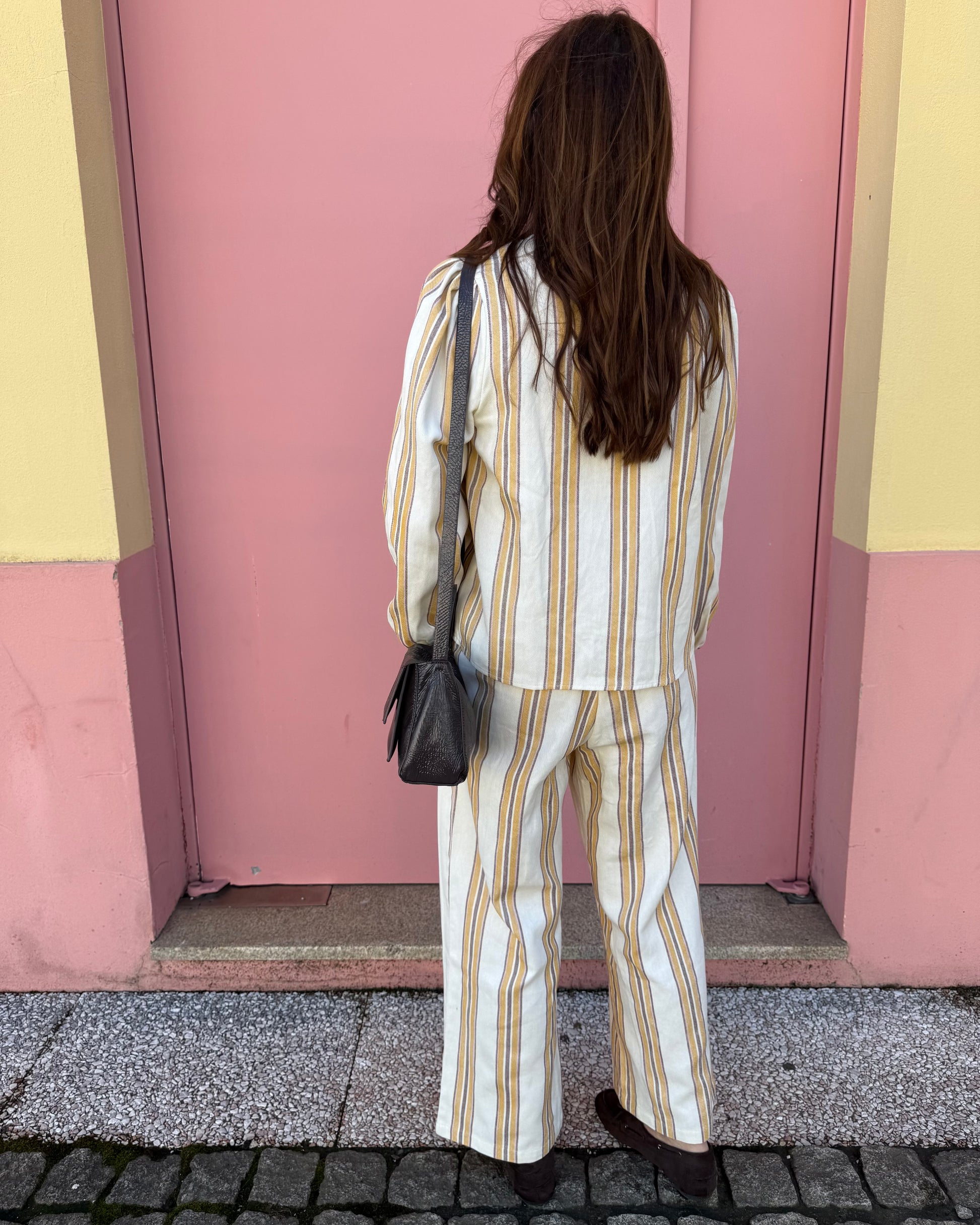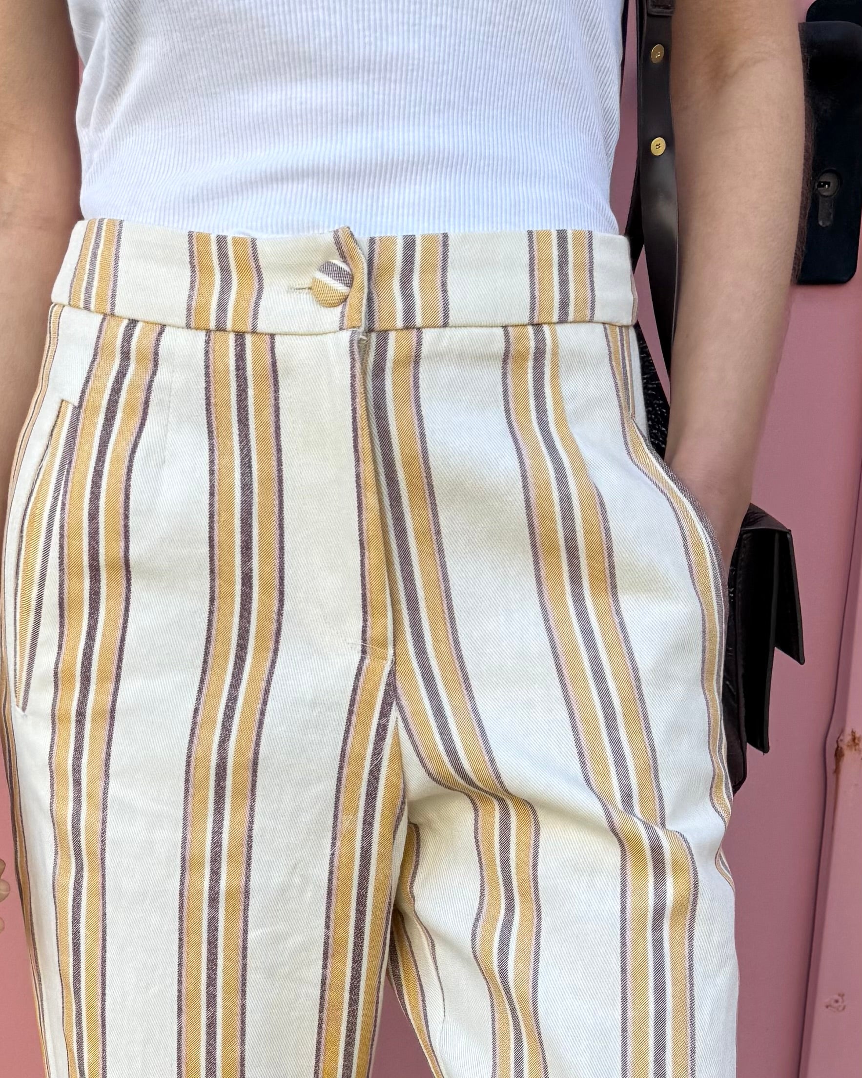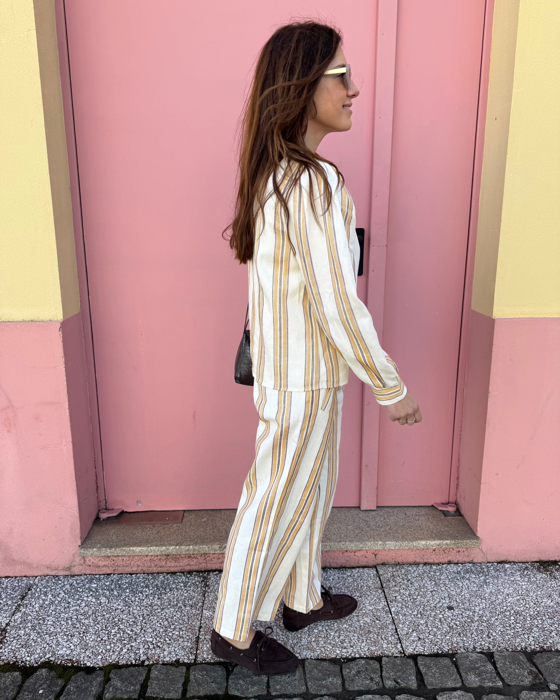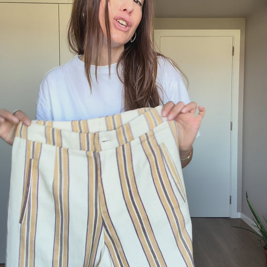 Calças com tecido estruturado. Ideal para usar em conjunto mas também separadamente.