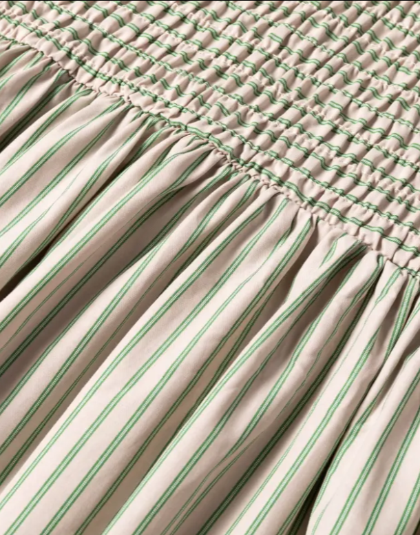 Com elástico na parte superior , que confere conforto e elegância à zona do peito e cintura. Corte evasé na parte inferior. Vestido fluído e leve.